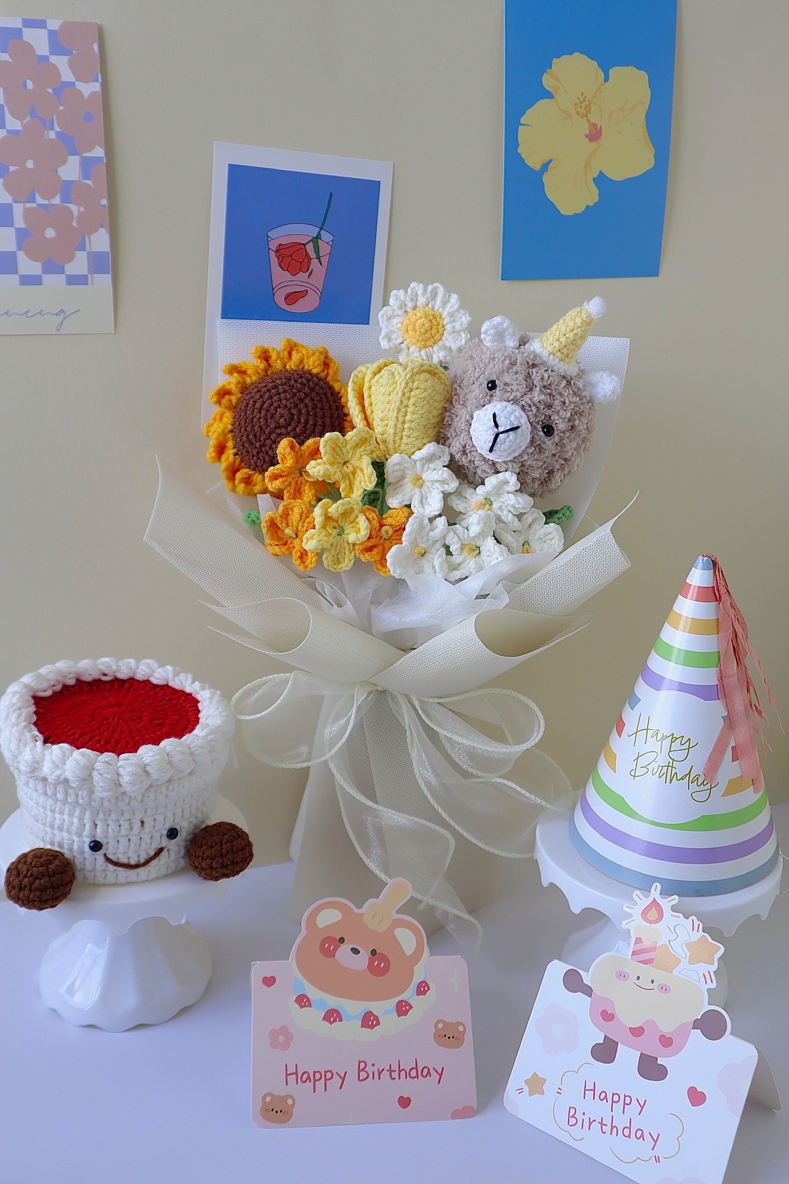 Perfect for a birthday. Our crochet flowers are a vibrant and thoughtful alternative to traditional bouquets. Crafted with care and high-quality yarn, they offer a soft touch and a burst of vivid hues that leave a lasting impression.