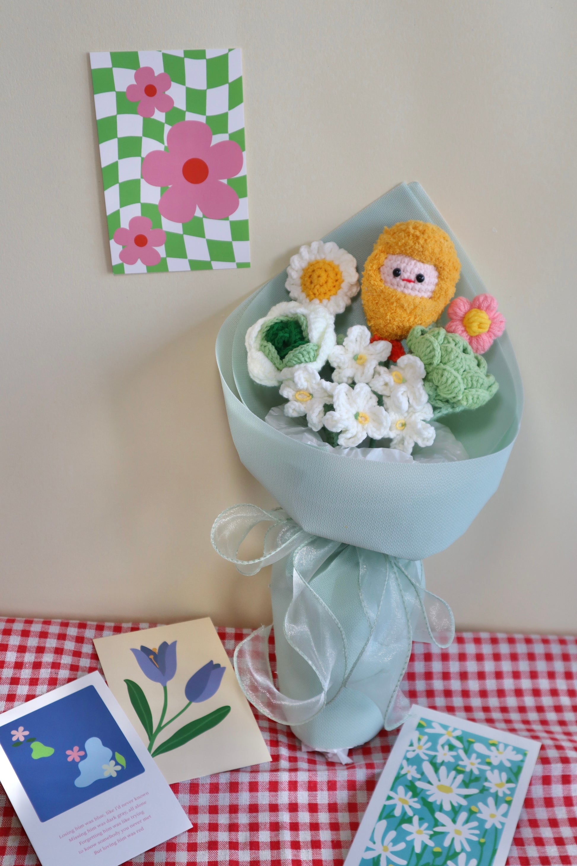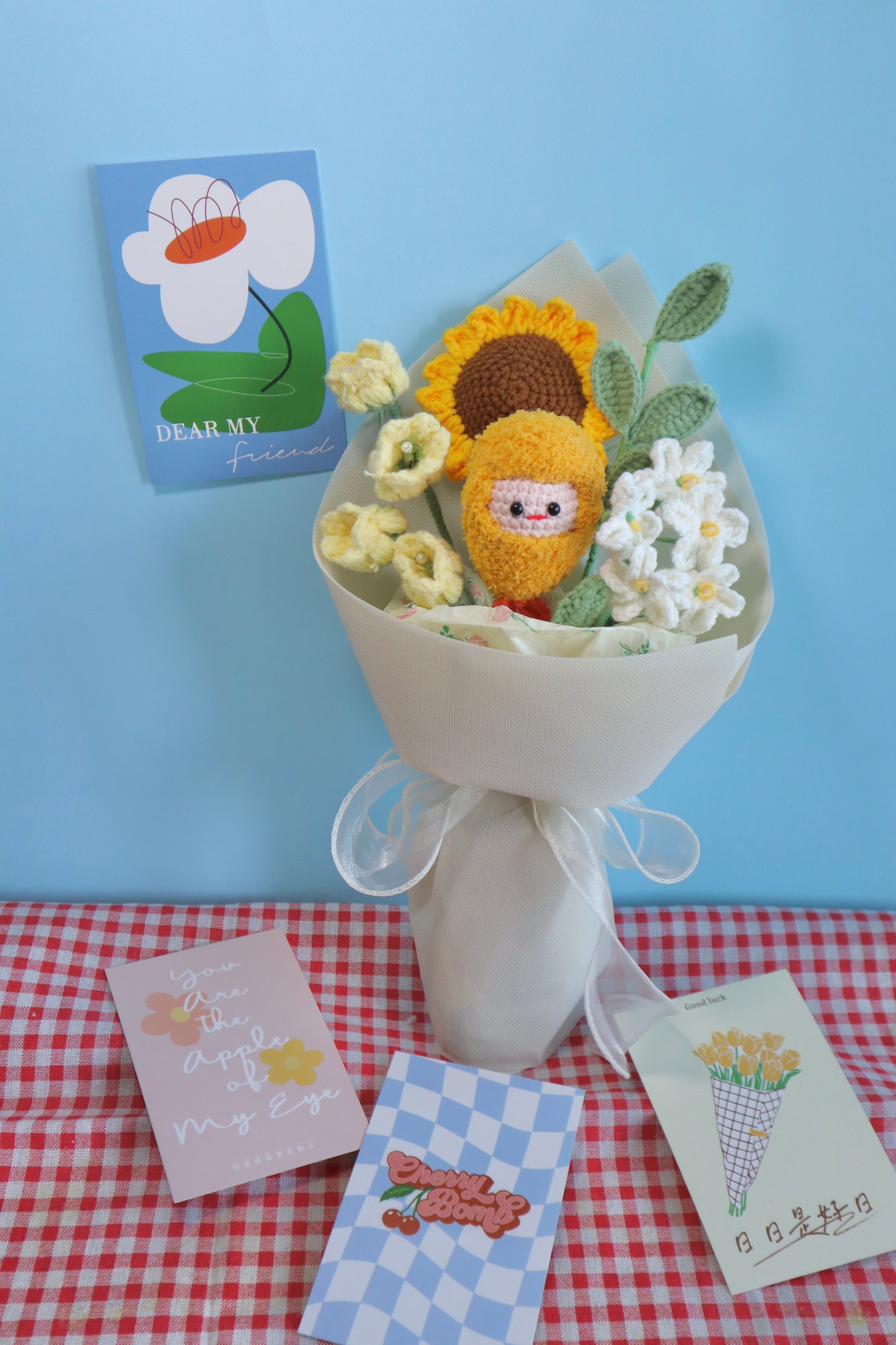 Perfect for a any ocassions. Our crochet flowers are a vibrant and thoughtful alternative to traditional bouquets. Crafted with care and high-quality yarn, they offer a soft touch and a burst of vivid hues that leave a lasting impression.