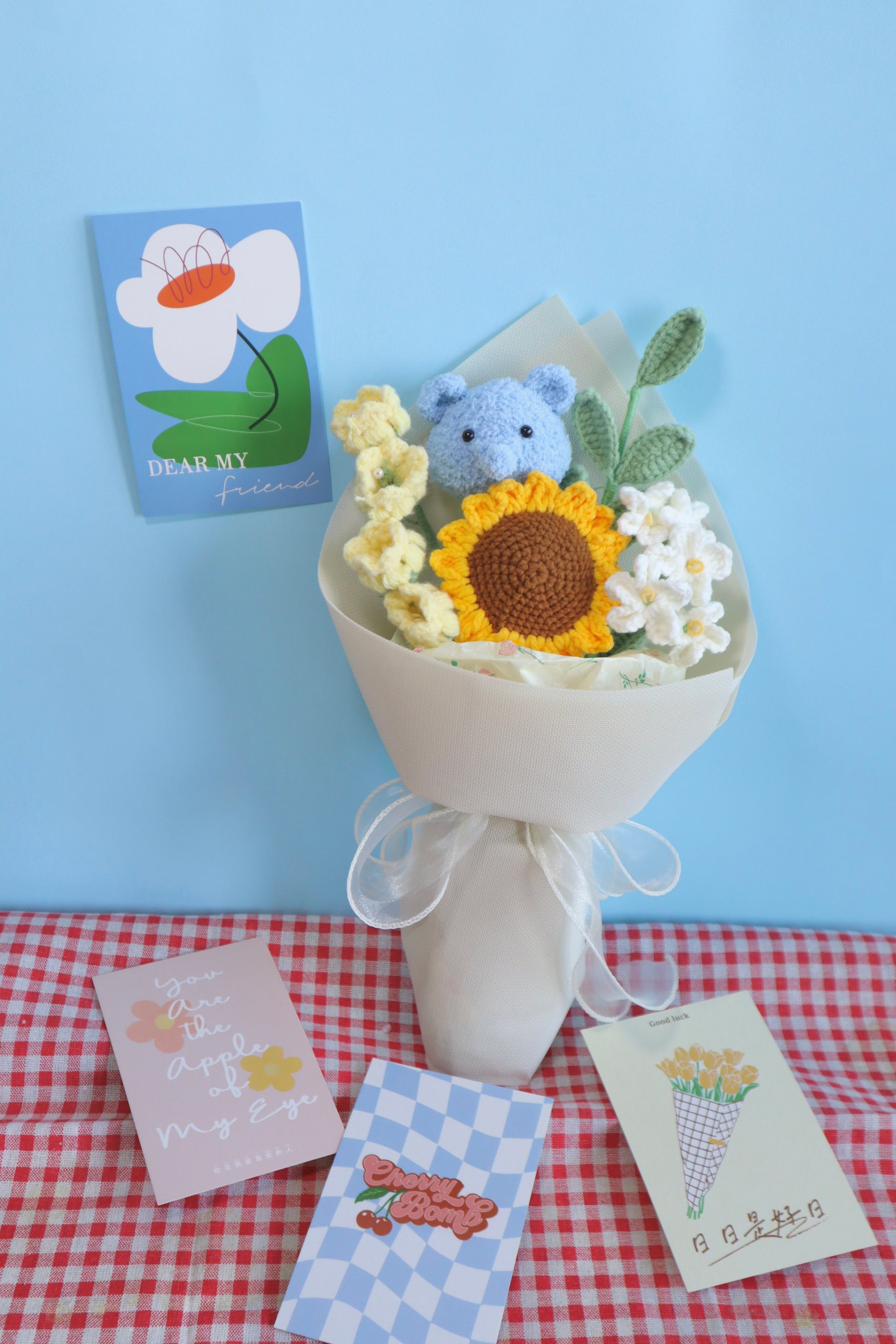 Perfect for a any ocassions. Our crochet flowers are a vibrant and thoughtful alternative to traditional bouquets. Crafted with care and high-quality yarn, they offer a soft touch and a burst of vivid hues that leave a lasting impression.