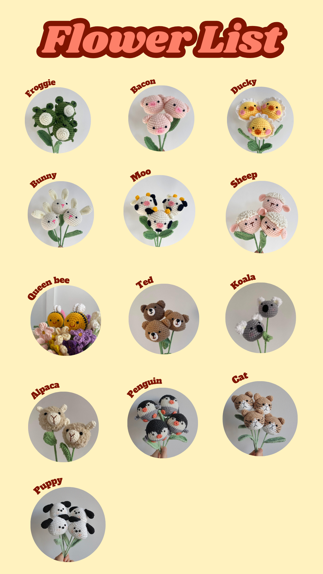 If the bundle is for any occasions (birthday, graduation, anniversary), please comment the occasion hat/ accessories for the animal flowers.